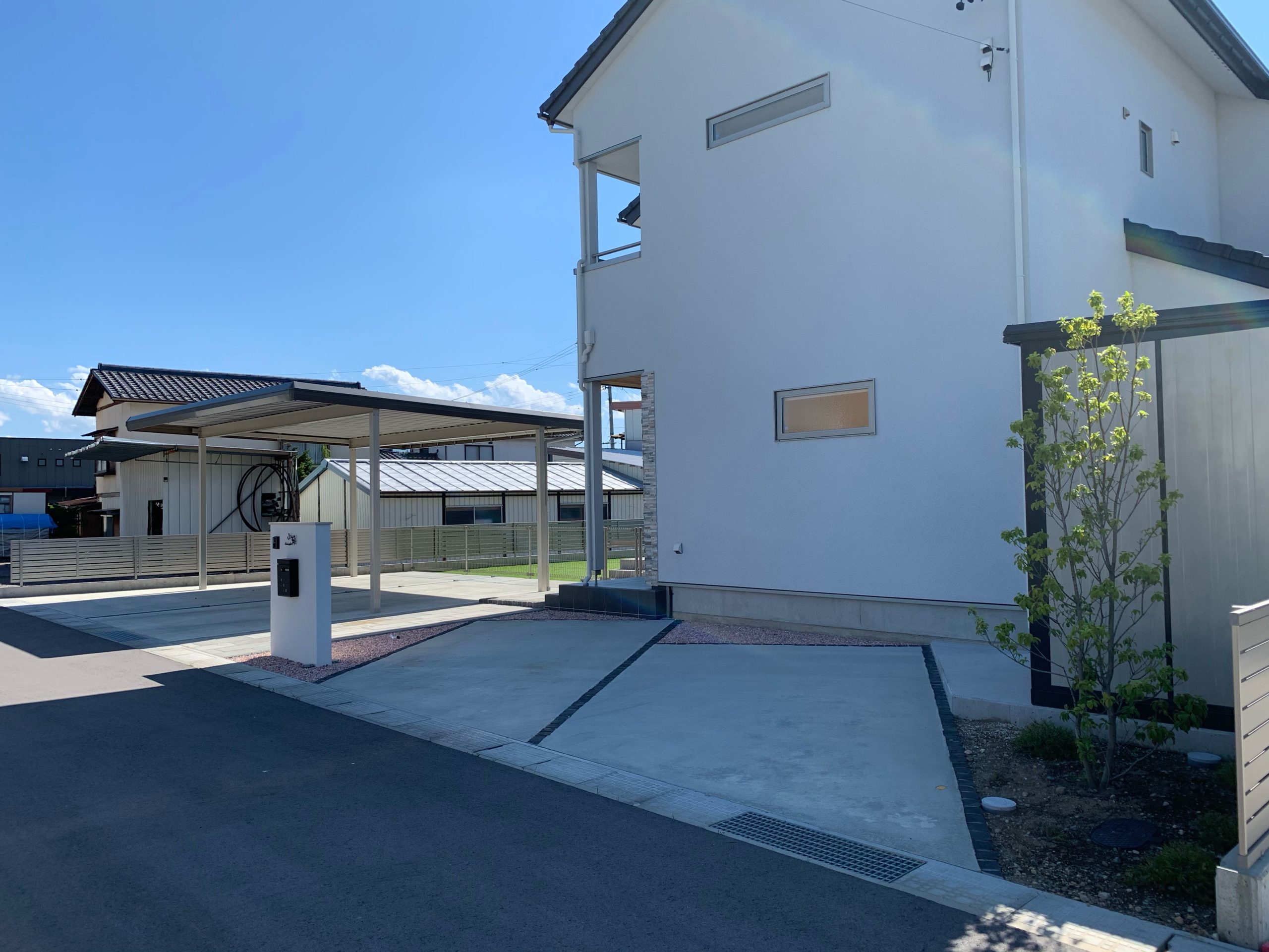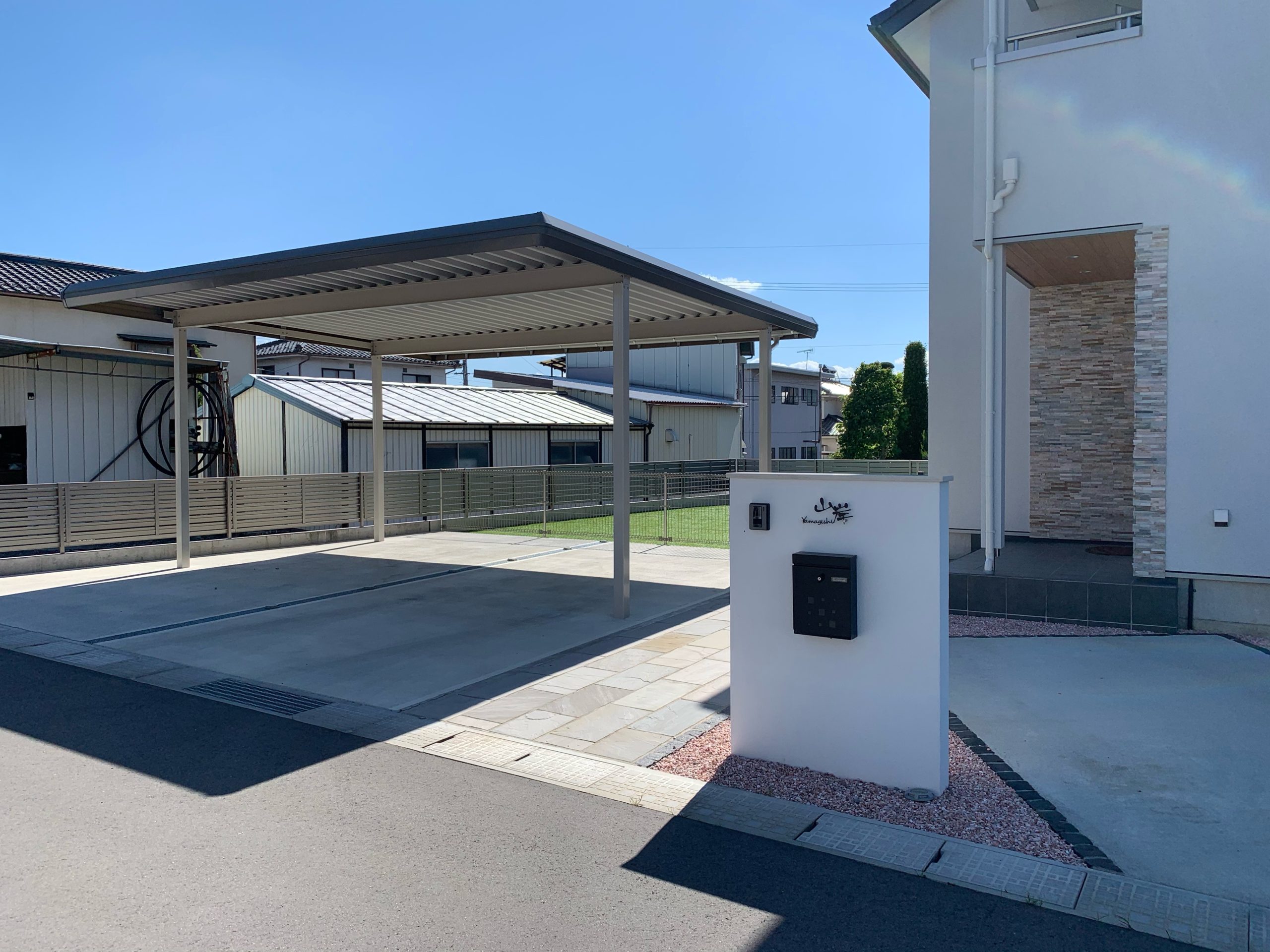 Y様邸の外構工事が完成しました。3Dパースデザインと比べてみてください。